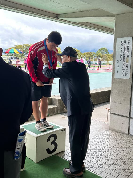 「北九州陸上カーニバル」が10月26日(日)に黒崎播磨陸上競技場 in HONJOで開催されました。 男子砲丸投で吉田智亮さん(2年3組)が第3位、森本景介さん(物質化学コース3年)が第4位、女子やり投で玉置理琴さん(2年2組)が第4位となりました。 大会には招待選手として、末續慎吾選手(2003年パリ世界陸上200m銀メダル)や、ディーン元気選手(2025年東京世界陸上代表)などのトップアスリートも会場を訪れ、大会は大いに盛り上がりました。