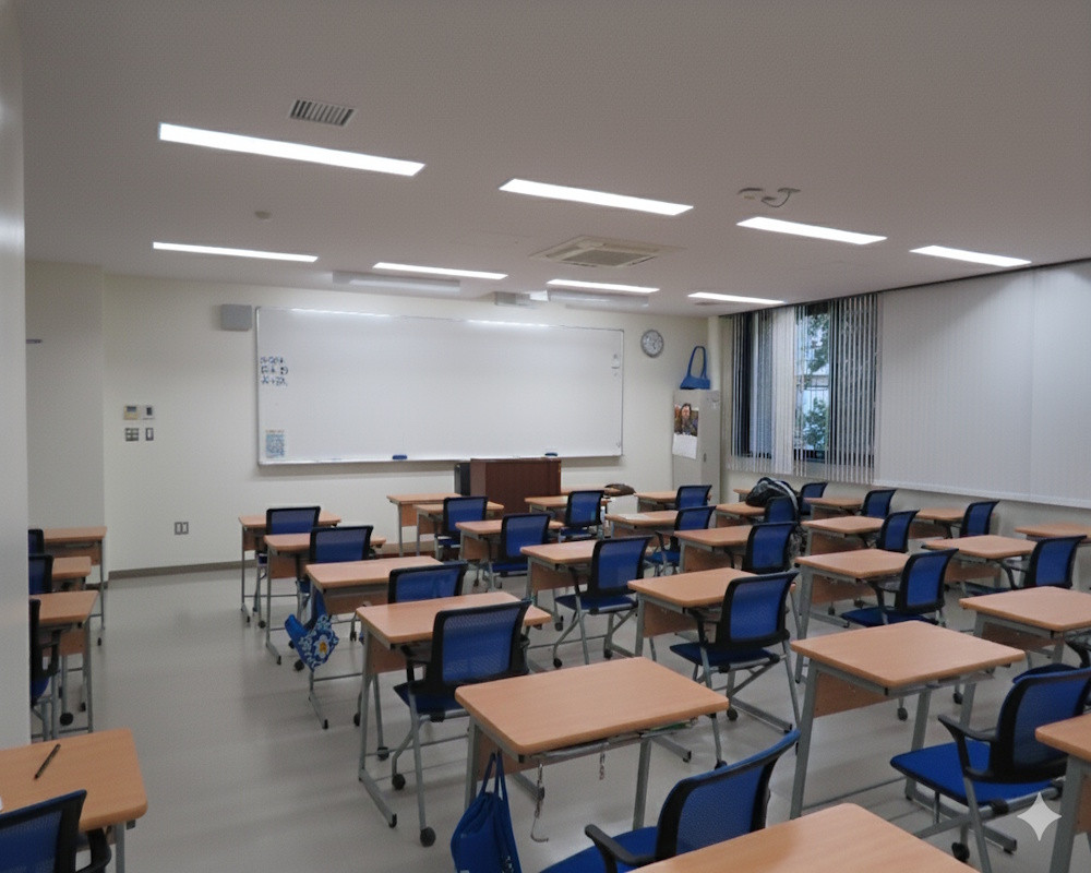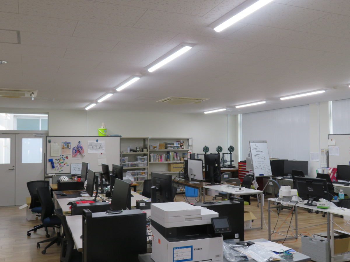 定員を十分収容できる広い講義室・演習室内に大きなホワイトボートを設置し、液晶プロジェクタや無線APを整備しています。