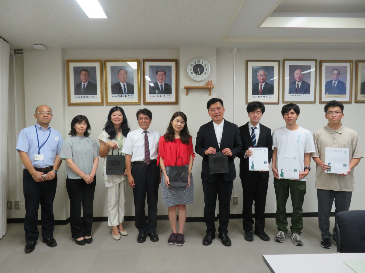 本校からは、片山校長の他、横山グローバル推進センター長、サマーキャンプを仲介した安部教員、そしてサマーキャンプに参加した4年生の学生3名が同席しました。