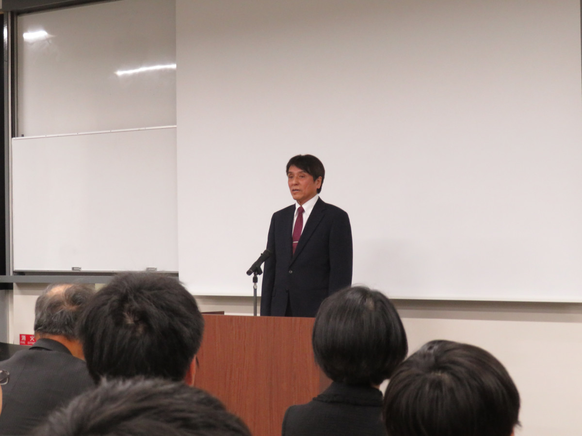 記念式典では、教務主事による開会の辞に続き、校長による式辞が述べられました。また、北九州高専技術コンソーシアム会長の上別府様、本校元校長の塚本様より、本校の発展と学生への期待を込めた心温まるご祝辞をいただきました。