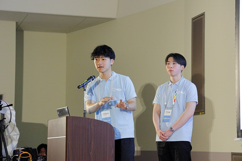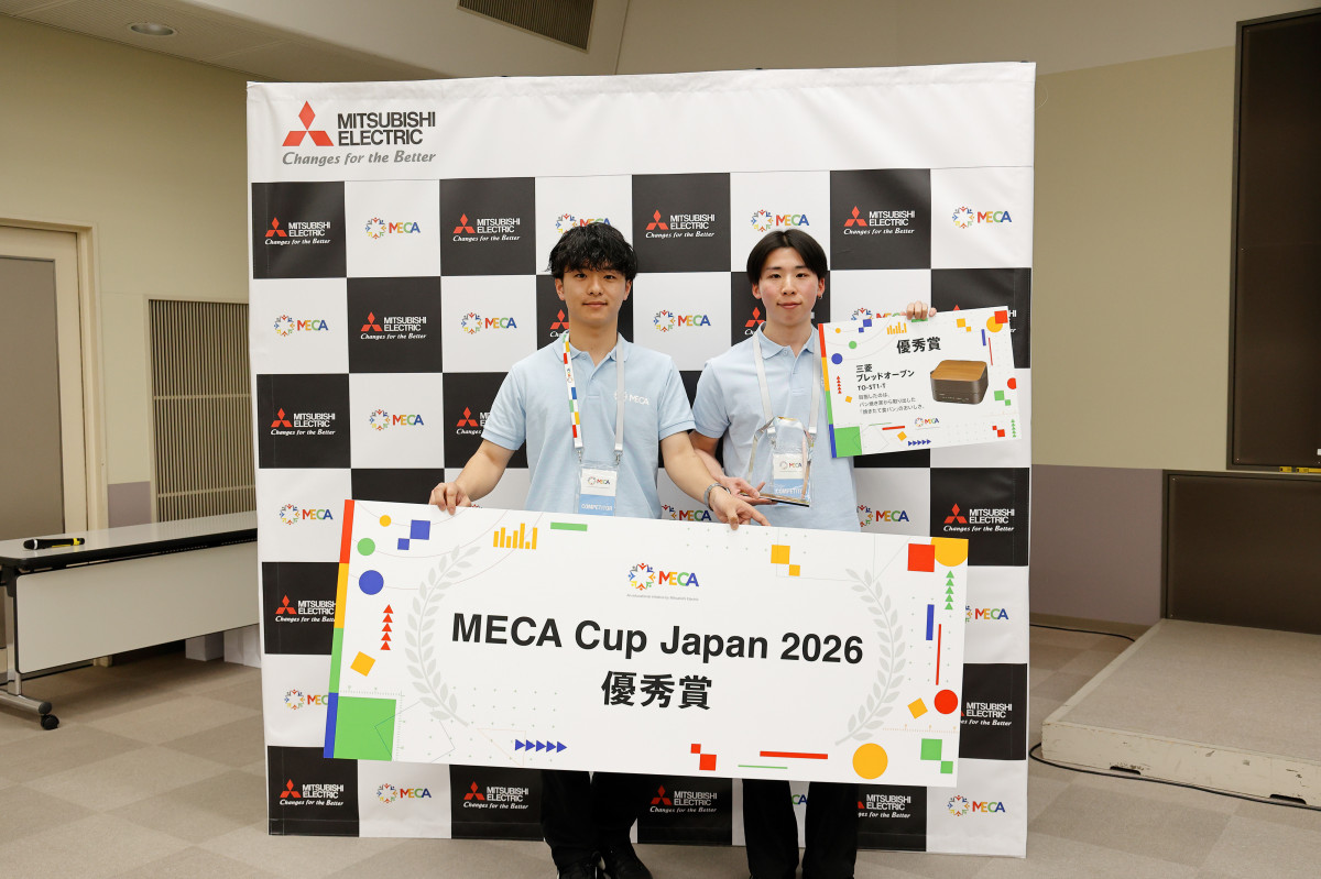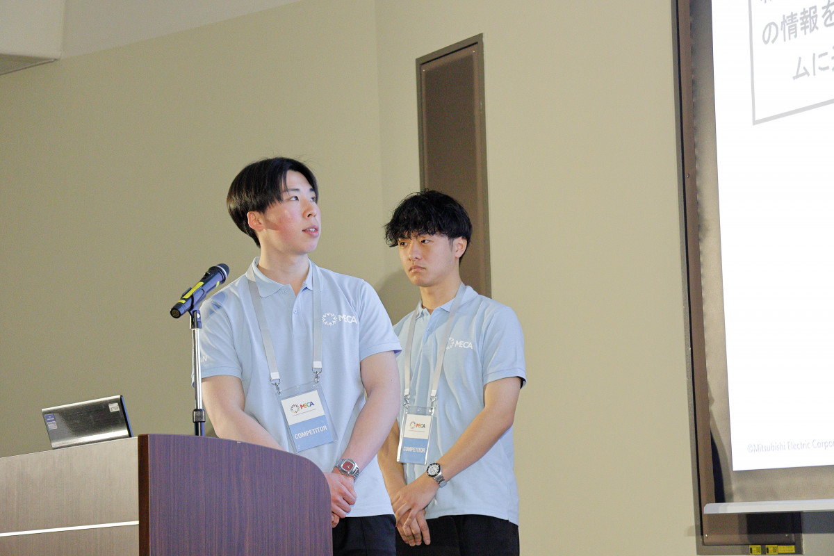 2026年3月16日(月)に三菱電機名古屋製作所で開催された「三菱電機杯 全国学生電気・自動化コンテスト 2026 日本大会」において、本校の久池井研究室に所属する学生で構成したチーム「にっときっと」が見事、優秀賞を受賞しました。 本大会は、三菱電機の3Dシミュレーションソフトウェア「Gemini」を活用し、3D上で社会課題を解決するアイデアをシミュレーションしてプレゼンテーションを行うものです。 審査では、創造性、実現可能性、拡張性、プレゼンテーション、専門知識の5項目に基づき、総合的な評価が行われます。 チーム「にっときっと」のメンバーは、専攻科 生産デザイン工学専攻1年の向井優剛さんと、生産デザイン工学科 知能ロボットシステムコース5年の高尾遼斗さんです。 二人は「医療システムの改善策〜搬送ロボットとマニピュレータによる労働負担の軽減」というテーマで発表を行い、医療現場における労働力不足の解消や従事者の負担軽減を目指した独創的な提案が高く評価されました。