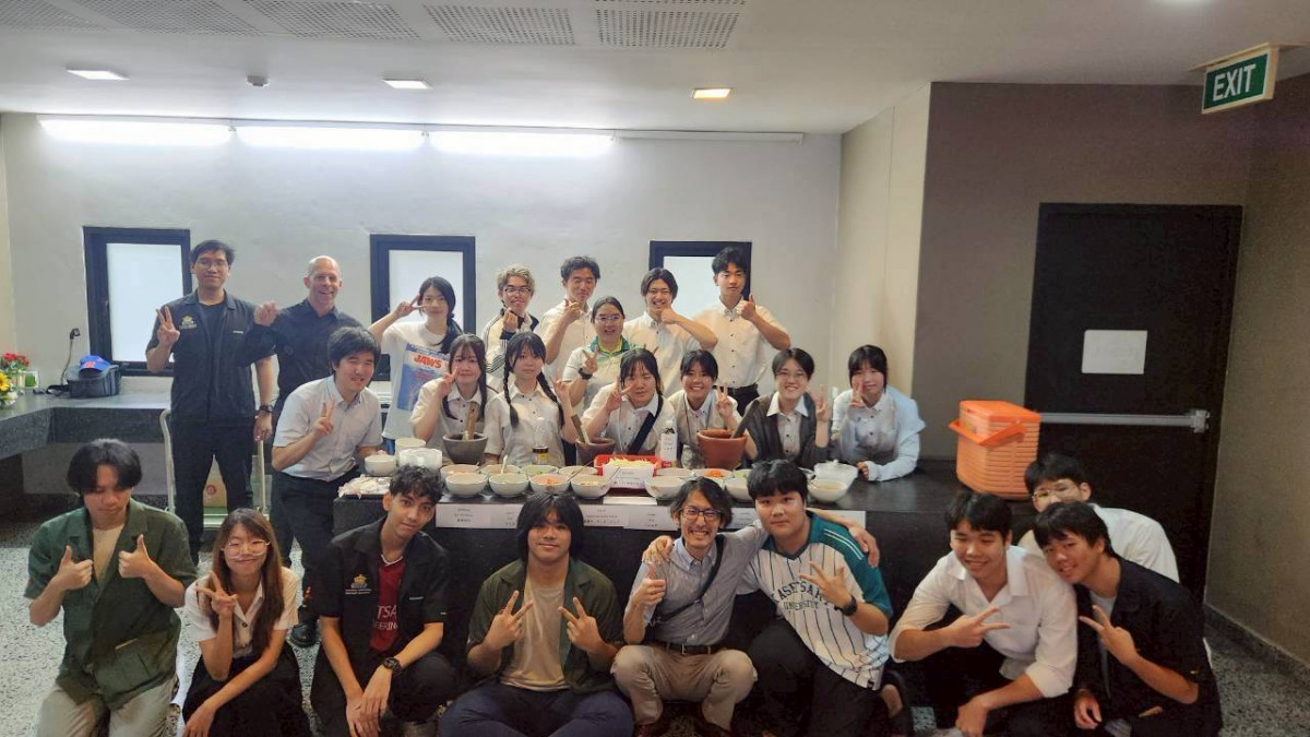 カセサート大学訪問では、研究室や図書館等の学内施設見学、大学構内で稼働している牛乳工場の見学をおこないました。広大なキャンパスやシアタールームを備えた図書館等の充実した教育施設を見学し、学生たちは刺激を受けている様子でした。また、カセサート大学訪問ではタイの伝統料理であるソムタム(パパイヤサラダ)の料理体験も実施しました。料理体験にはタイの学生たちも参加し、コミュニケーションをとりながらソムタム作りを一緒に楽しんでいました。