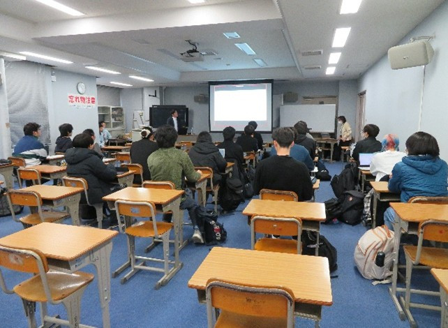 この授業は「ロボット・モビリティ工学」の一環として行われ、機械工学科・電気工学科・電子工学科・物質工学科の4学科に所属する5年生20名が出席しました。